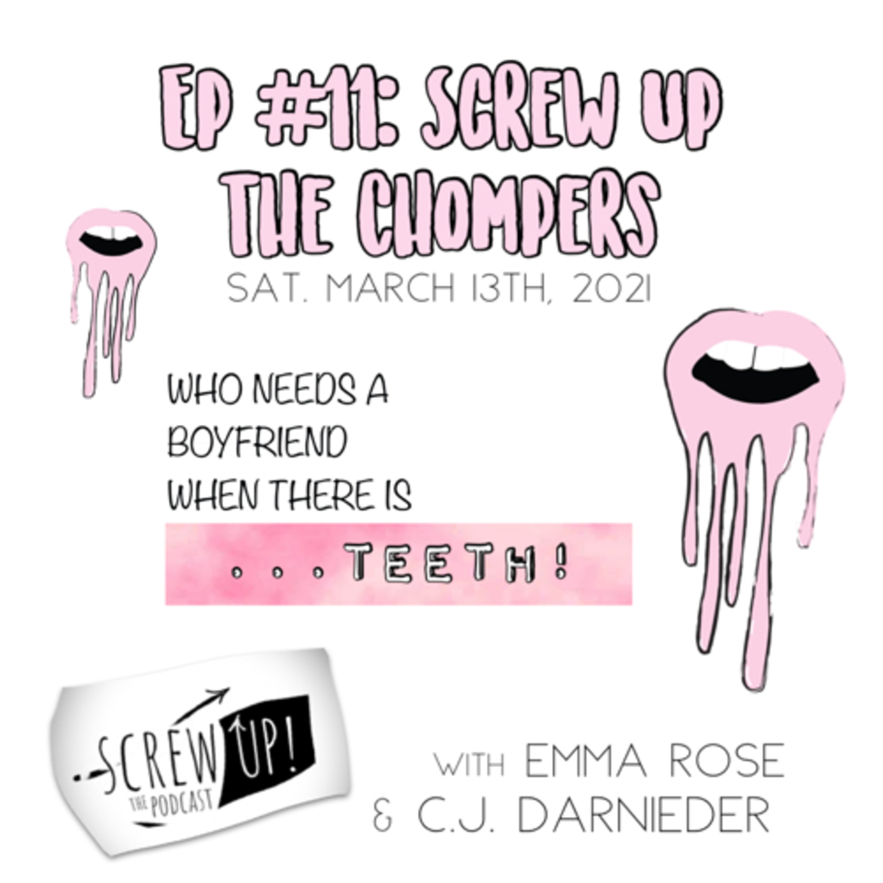 Sink your teeth into this week\u2019s episode of Screw Up the Podcast in which Chicagoland comedians, C.J. Darnieder & Emma Rose, open wide to spill the T about their screwed up teeth & screwed up experiences! \n\nHuge Shout Out to listener, Clever Pseudonym for their hilarious email read for you on this week\u2019s episode! You are always encouraged to email your screwed up stories of all kinds to ScrewUpThePodcast@gmail.com \n\nHey, it\u2019s better than pulling teeth, check out C.J. & Emma\u2019s YouTube Channel \u201cScrew Up the Podcast\u201d for behind the scenes videos & TEST OUTs, a video series in which buzzfeed quizzes are taken...way too seriously. \n\nListen to Screw Up the Podcast on Spotify, Apple Podcasts, Google Podcasts, Overcast, PocketCasts, RadioPublic, Breaker, Castbox, Anchor.fm other fav podcast streaming platforms! \nFeedback is always welcome so don\u2019t forget to rate, review, subscribe on your platform of choice! \nFollow us on IG @ScrewUpThePodcast & on Twitter @ScrewUpThePod.