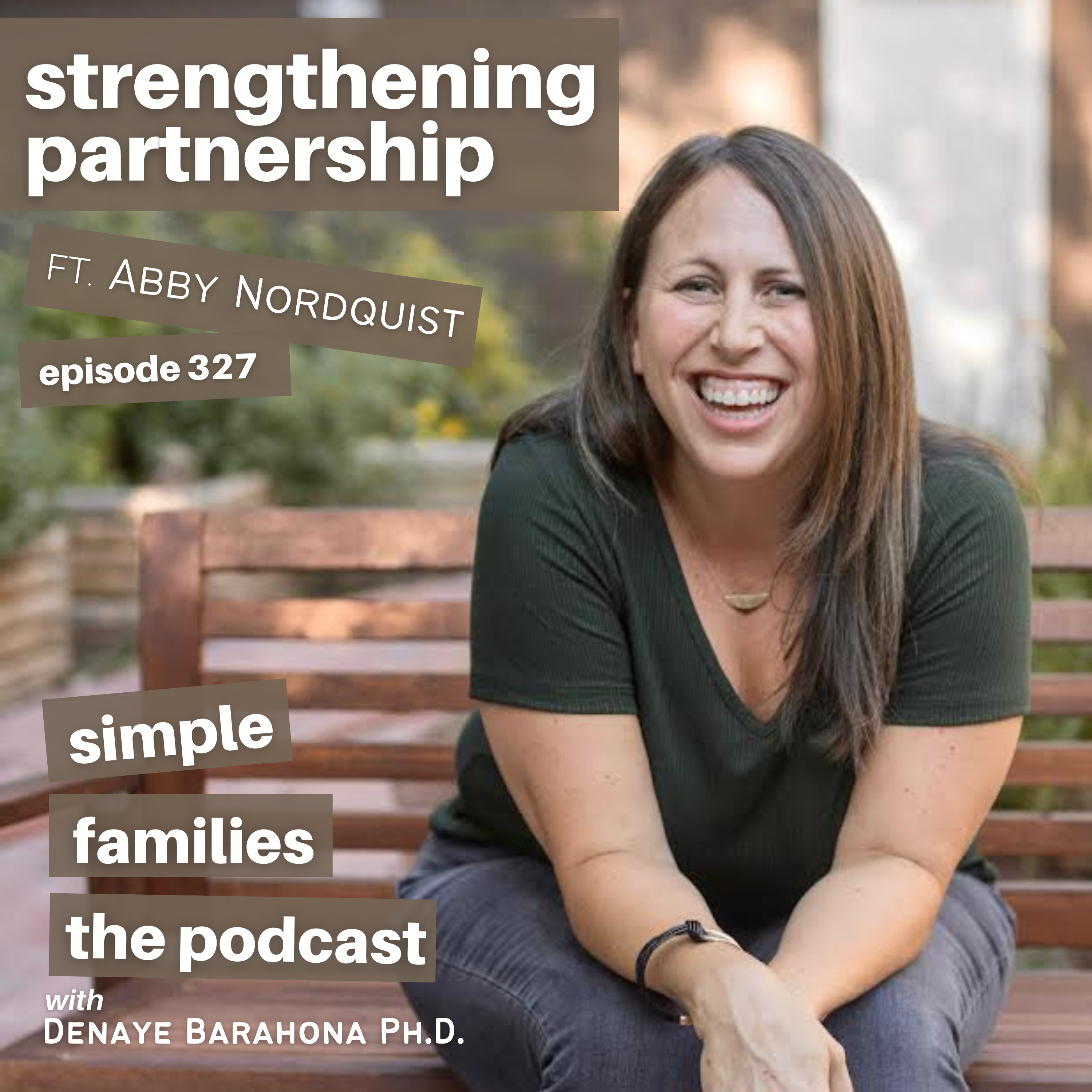 The addition of children is one of the most pivotal changes experienced in a partnership or marriage. Reconnecting and strengthening partnerships in the parenthood stage is what we are chatting about today with Licensed Marriage and Family Therapist Abby Nordquist.\nLinks from the episode\n\n\nLoveWell by Abby Nordquist\n\nTake the LoveWell Quiz HERE\n\n\nSimple Families Episode 312: I Can't Believe I Just Did That ft. Eve Rodsky\n\n\nSimple Families Episode 323: Boundaries\n\n\nSponsors\n\n\nCozy Earth \u2013 Get 35% off site wide using the code SIMPLE at CozyEarth.com.\n\n\nLUS Brands \u2013 Get 15% off your first haircare order of $50 at LUSBrands.com using the code SIMPLE.\n\n\nSEED \u2013 Visit seed.com/simple and use the code SIMPLE to redeem 20% off your first month of Seed's DS-01 \u2122\ufe0f Daily Symbiotics.