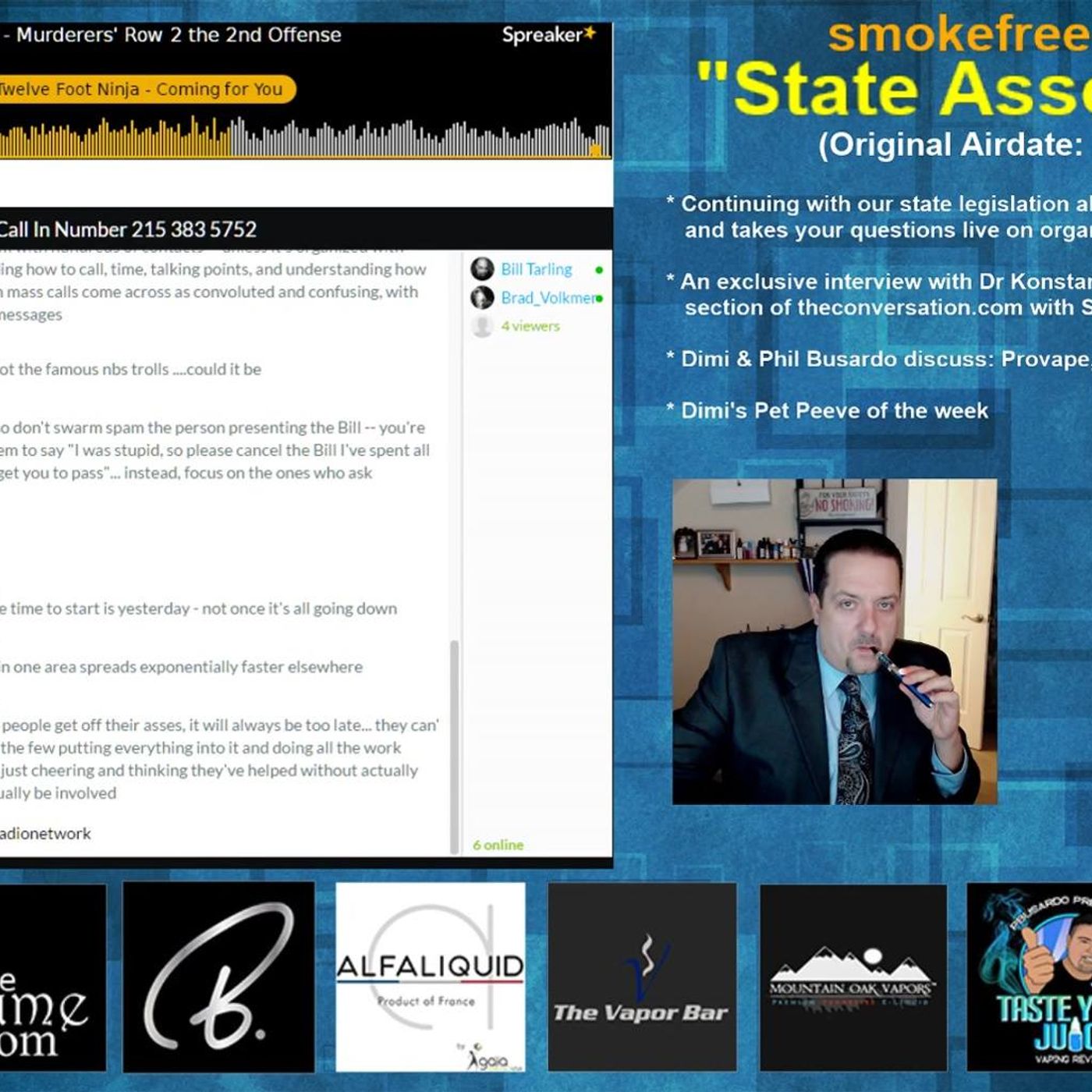 * Continuing with our state legislation alert, Jake Butcher joins us and takes your questions live on organizing and defeating bad legislation. * Provape, closed or retired?* Dimi's Pet Peeve of the week