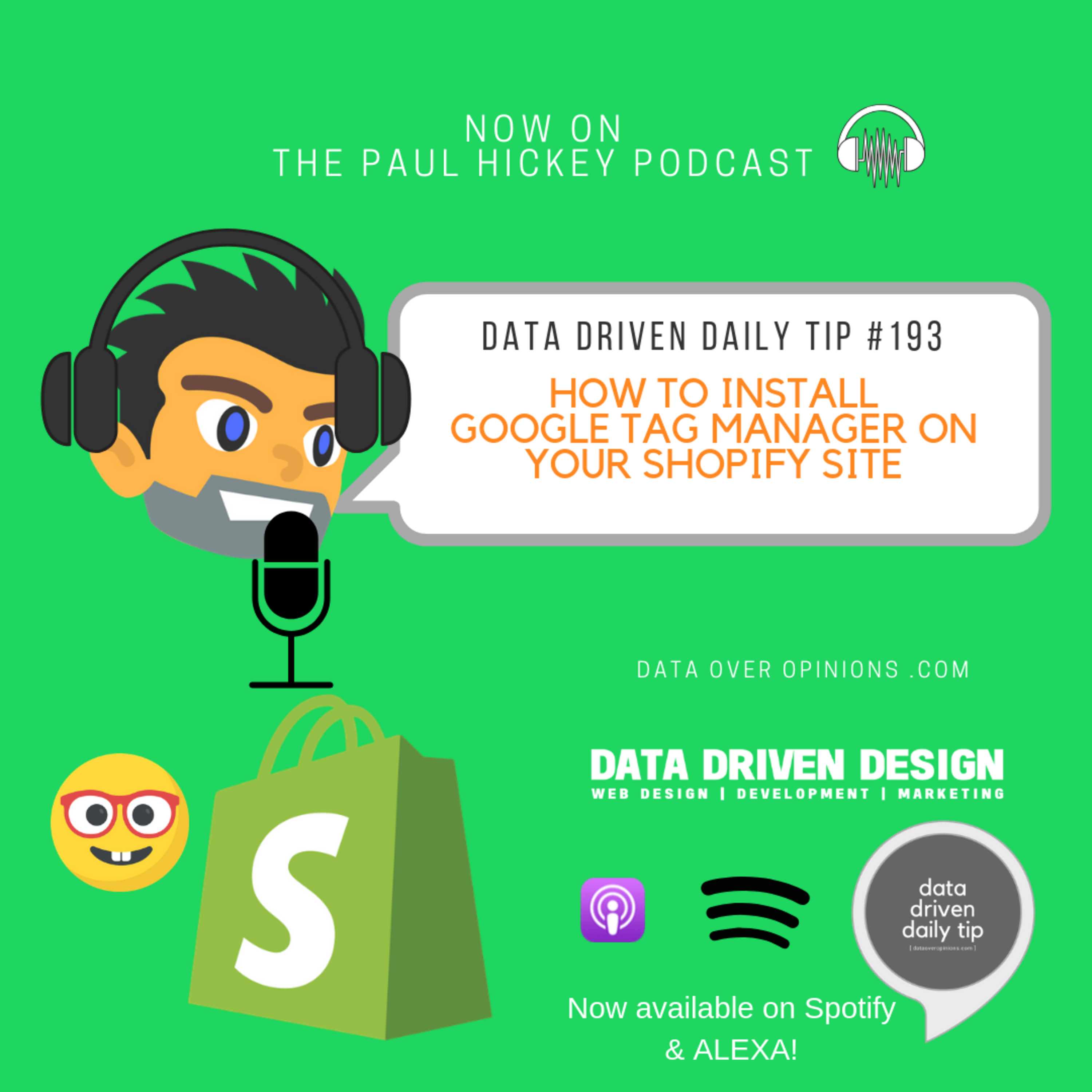 Data Driven Daily Tip 193 - If you own a Shopify eCommerce Store, you're likely interested in running digital campaigns, and very interested in understanding what drives the most qualified web traffic and conversions to your website:\n\nFacebook Ads?\nInstagram Content and Ads?\nGoogle Adwords?\nWhere is the opportunity? Where is the whitespace for growth? While our Digital Strategy Roadmaps are a great service offering to answer these questions, from an ongoing digital marketing execution perspective, you need an accurate way of aggregating your data over the long term to understand what's working.\n\nGoogle Tag Manager is a tool that you need to install to set up your data gathering properly within Google Ads and Google Analytics and other platforms.\n\nSetting up Google Tag Manager on your Shopify site is critical.