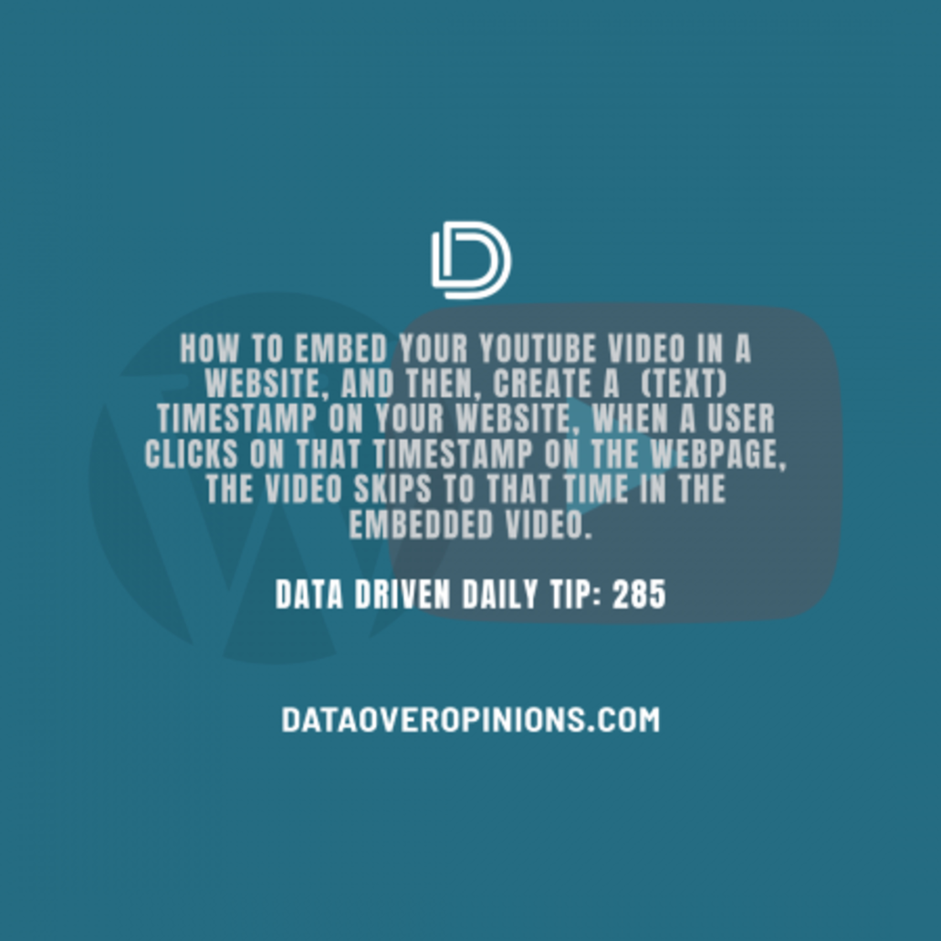 A while back, I posted a Data Driven Daily Tip on How To Hyperlink Directly To A Timestamp On A YouTube Video. It garnered solid feedback as one of my more "practical" and "useful" tips for anyone, regardless of role, probably because it crosses over outside of business, and into the mainstream of "anyone who ever wants to share a particular part of a YouTube video."