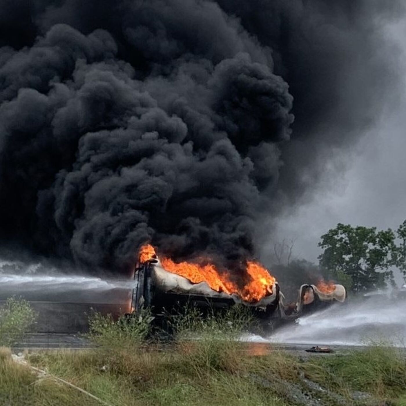 The tanker, carrying 13,000 gallons of fuel, crashed into a barrier wall on I-75 in Troy, igniting a fire that closed both sides of the freeway, scorching the highway and median. \xa0