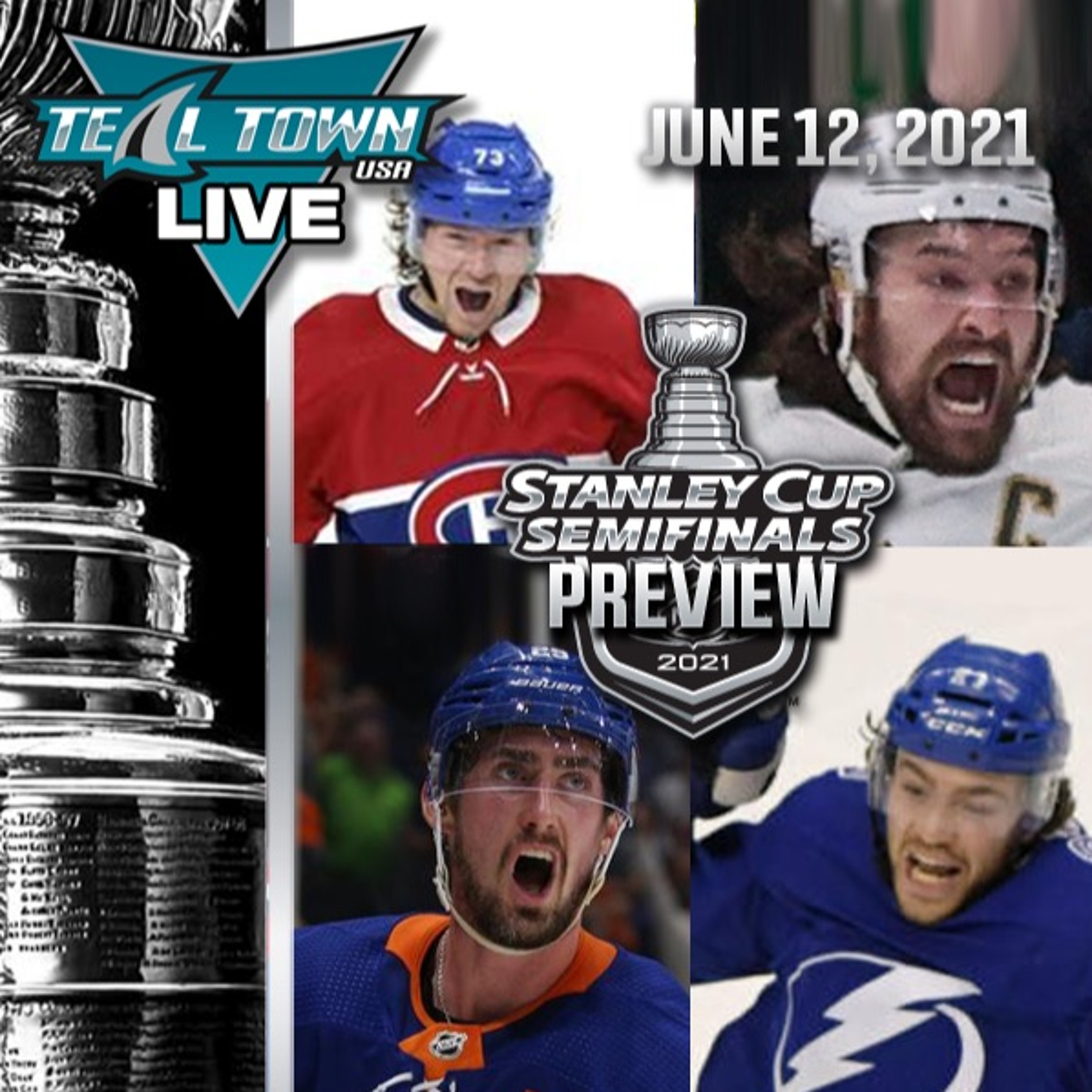 On this edition of Teal Town Live, Erik Kuhre and Ian Reid break down the 2021 Stanley Cup Semifinals, Montreal Canadiens vs Vegas Golden Knights and New York Islanders vs Tampa Bay Lightning. We also pick our choices of Conn Smythe candidates from each team. \n\nTeal Town USA - A San Jose Sharks' post-game podcast, for the fans, by the fans! Subscribe to catch us after every Sharks game and our weekly wrap-up show, The Pucknologists!\n\nCheck us out on YouTube and remember to Like, Subscribe, and hit that Notification bell to be alerted every time we go live!\n\n\U0001f4fa YouTube: www.youtube.com/tealtownusa\n\nWant audio only? Subscribe to our audio-only platforms below:\n\n\U0001f3a7 Apple Podcasts: rb.gy/xpfreu\n\U0001f3a7 Audible: rb.gy/tjjrfl\n\U0001f3a7 Google Podcasts: rb.gy/vp1umi\n\U0001f3a7 iHeart: rb.gy/7hadsr\n\U0001f3a7 SoundCloud: rb.gy/fhgdie\n\U0001f3a7 Spotify: rb.gy/cng4eq\n\U0001f3a7 Stitcher!: rb.gy/alqmcp\n\U0001f3a7 TuneIn: tun.in/ph9UE\n\nFollow our Social Media channels for more exclusive content:\n\n\U0001f426 Twitter: twitter.com/TealTownUSA\n\U0001f4f8 Instagram: www.instagram.com/tealtownusa/\n\U0001f4e3Discord: discord.gg/vMkBHHNV44\n\U0001f4dd Reddit: www.reddit.com/r/TealTownUSA/\n\U0001f44d Facebook: www.facebook.com/TealTownUSA/\n\n\U0001f4f2 Website: www.TealTownUSA.com\u200b\u200b\u200b