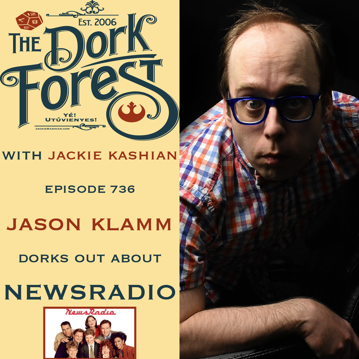 Jason Klamm (@jasonklamm) is a comedy NERD\u2026 his DORKDOM is the ol\u2019 Sitcom NewsRadio and we get INTO it! I am reminded of the 90s. He has a new book coming called \u201cWe\u2019re Not Worthy\u201d and you can order it here: https://jasonklamm.com/notworthybook/ \nthis episode is sponsored by www.BetterHelp.com/DORK\xa0\xa0\n\ufeffDonate to The Dork Forest if you like the show. The paypal is my email jackie@jackiekashian.com and venmo is jackiekashian. Links to everything is at www.dorkforest.com or\xa0www.jackiekashian.com.\nMerch: New album and Special, TDF tshirts, standup shirts and other CDs/DVDs. Touring Info. All the things. www.jackiekashian.com.\nPremium eps of TDF are taped live and available here: https://thedorkforest.bandcamp.com/ Youtube has everything too.\n It's @jackiekashian on all the social mediaz.\nAudio and Video by Patrick Brady\n Music is by Mike Ruekberg\n Website design by Vilmos\n#applepodcasts #spotify #amazon #youtube #tiktok\nLearn more about your ad choices. Visit megaphone.fm/adchoices