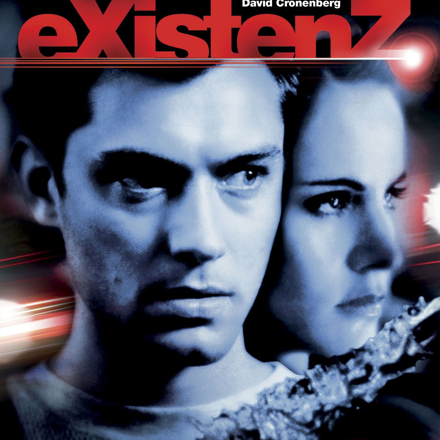 eXistenZ, the 1999 film from writer/director David Cronenberg stars Jennifer Jason Leigh as Allegra Geller, a game designer who has been marked for death by a faction known as the “Realists”. After an assassination attempt she escapes with her ineffectual bodyguard, a PR nerd named Ted Pikull played by Jude Law. The pair eventually test out Allegra’s new game, eXistenZ, in order to make sure her biomass game pod is still functional. From there the film traverses many layers of game play, making viewers question what’s real and what’s part of play.