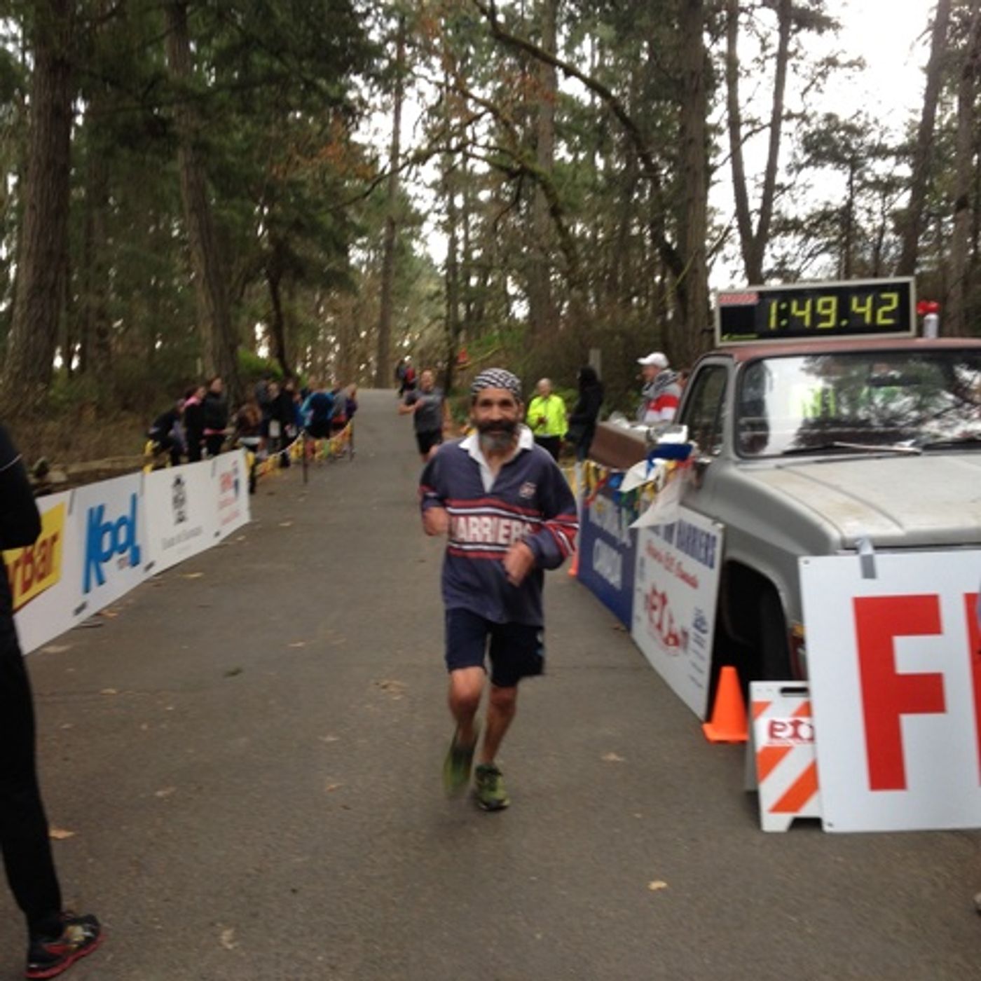 Derick's first ever race,he did 27 minutes for the five kilometre trail loop, we all ran within 1:30 of each other and came in with a cumulative total time of 1:49:42.