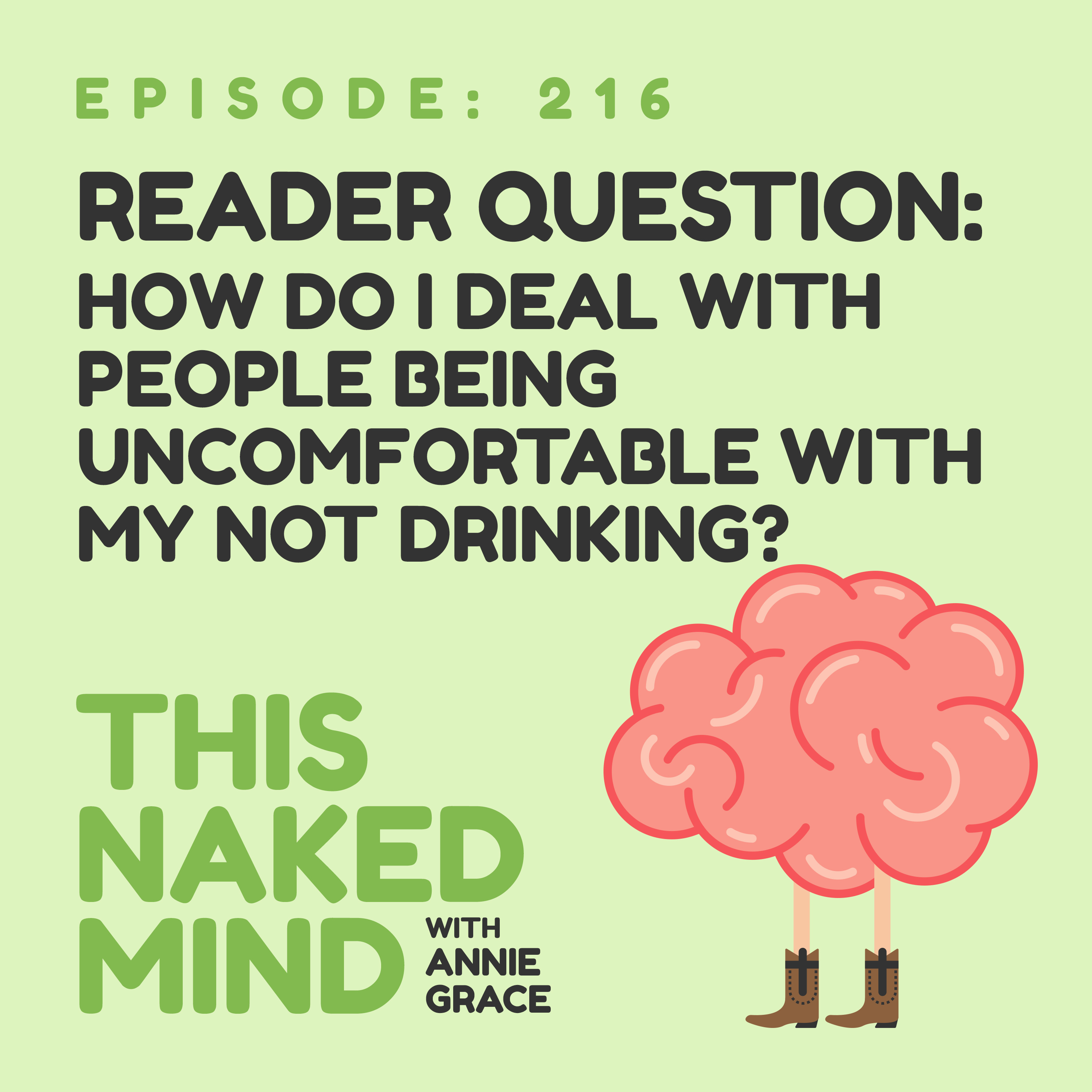 There\u2019s no denying that there\u2019s an awkward tension in the room when we\u2019re the only ones not drinking \u2013 especially when we\u2019re newly alcohol free. So, how do we deal with this? Annie tells us not only HOW to deal with this, but also gives us insight into WHY there\u2019s an elephant in the room when we choose not to drink.\n Are you ready for a deep dive into truly lasting change? If so, you might consider my Intensive Program. It\u2019s a 9-week, self-led program that you can do in the complete comfort of your own home. It will truly transform your relationship with alcohol. If you want to learn more about this, go to thisnakedmind.com/intensive.\xa0\n And, as always - rate, review, and subscribe to this podcast, as it truly helps the message reach somebody who might need to hear it today.
