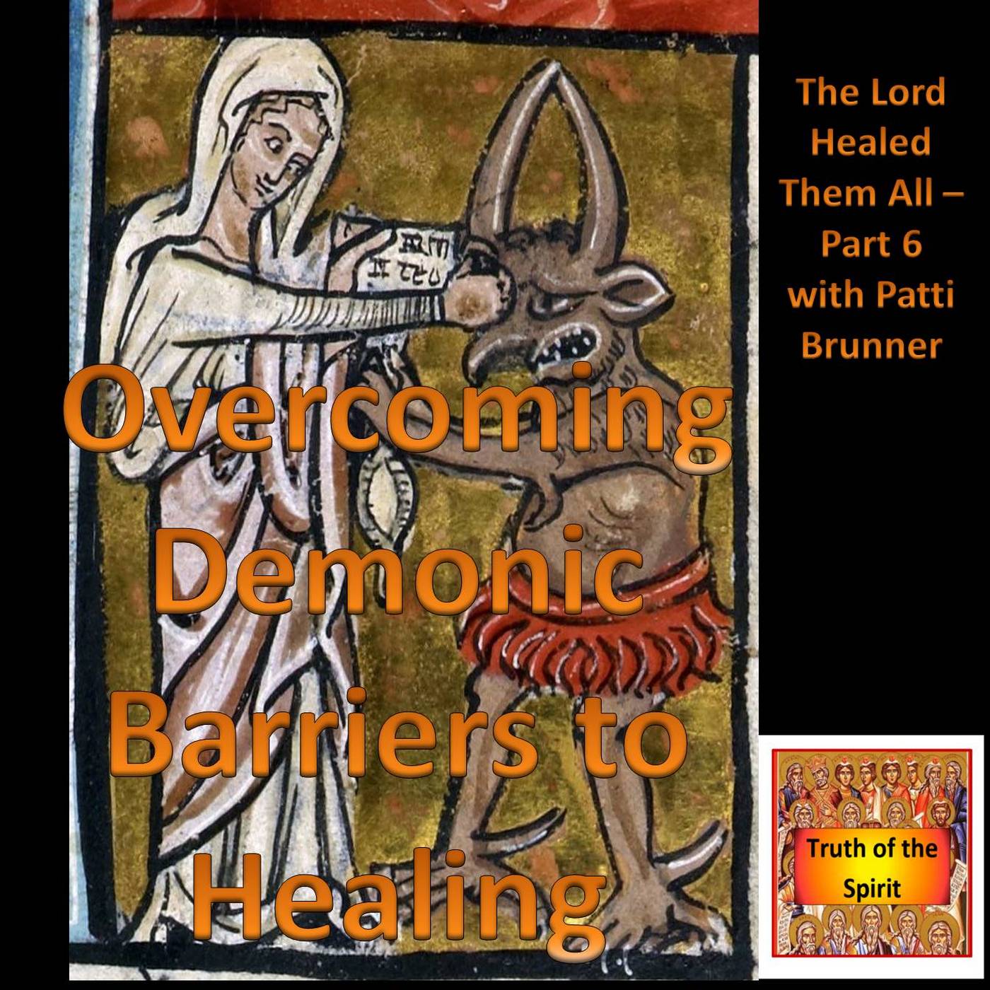 Overcoming Demonic Barriers to Healing with Patti Brunner is Part 6 of the \u2018Jesus Healed Them All\u2019 series. Sometimes healings are blocked due to occult barriers. We are reminded in Ephesians 6 that our battle is not against flesh and blood, but spiritual forces of evil, such as spirits of infirmity, anxiety, addiction and spirits of fear. There are three types of demonic interference: Temptation, oppression and possession. The most frequent form of oppression is harassment. The enemy wants his victims to think there is no help or hope for them. Prayer may have to be repeated; wars have more than one battle and you may find yourself in spiritual warfare.