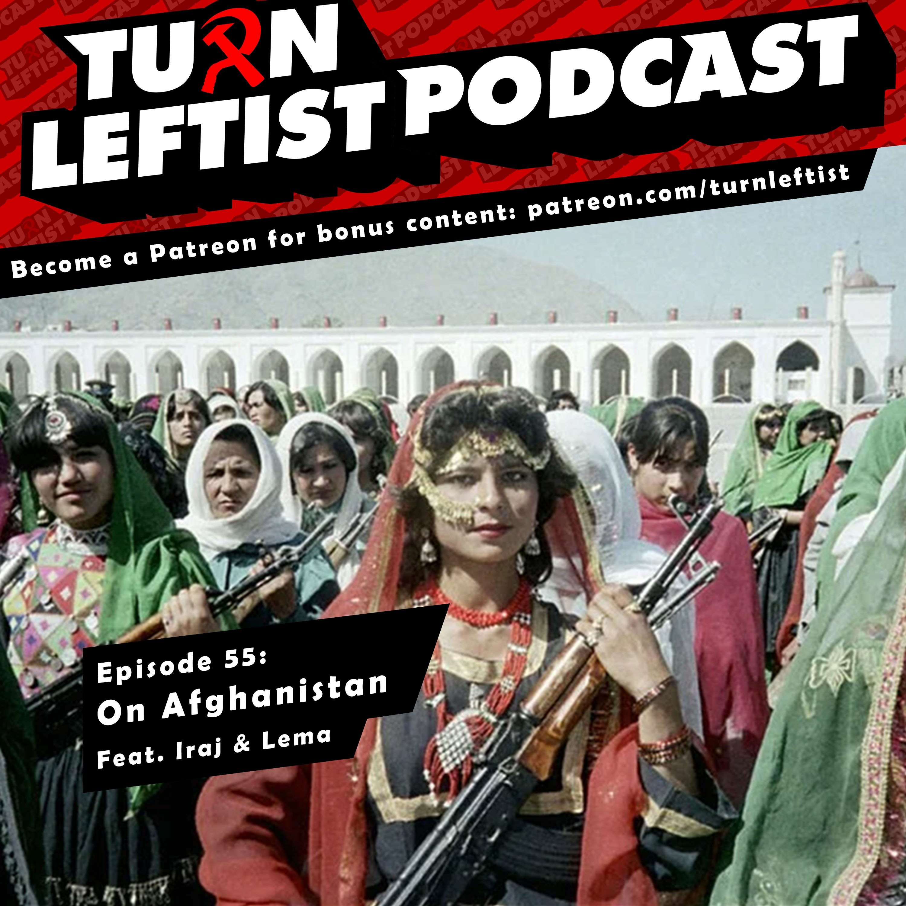 This week we're joined by Iraj & Lema to discuss all about Afghanistan!\n\nKhalq Collective:\nhttps://youtube.com/channel/UCyF4FYZqHt2wcXnoeEkvMfw\n\nIraj's Book Recommendations:\nPhilip Bonosky's "Afghanistan - Washington's Secret War"\nSteve Coll's "Ghost Wars"\n"The Bear Trap"\nRobert Dreyfuss's "Devil's Game"\nAhmed Rashid's "Taliban: Militant Islam, Pile and Fundamentalism in Central Asia"\nElizabeth Gould and Paul Fitzgerald's "Invisible History: Afghanistan's Untold Story"\n\nJUST RESTOCKED ALL SIZES of our "Reagan is Satan" official Turn Leftist Podcast shirts! Available at:\nturn-leftist-podcast.myshopify.com\n\nBecome a Patreon!\npatreon.com/turnleftist\n\nListen now and follow us on social media!\n\nLinktree (with links to shirts & Discord): linktree.com/turnleftist\nTwitter: @turnleftistpod\nInstagram: @turnleftist / Backup: @turnleftist1312\nFacebook: @turnleftistpod (facebook.com/turnleftistpodcast)