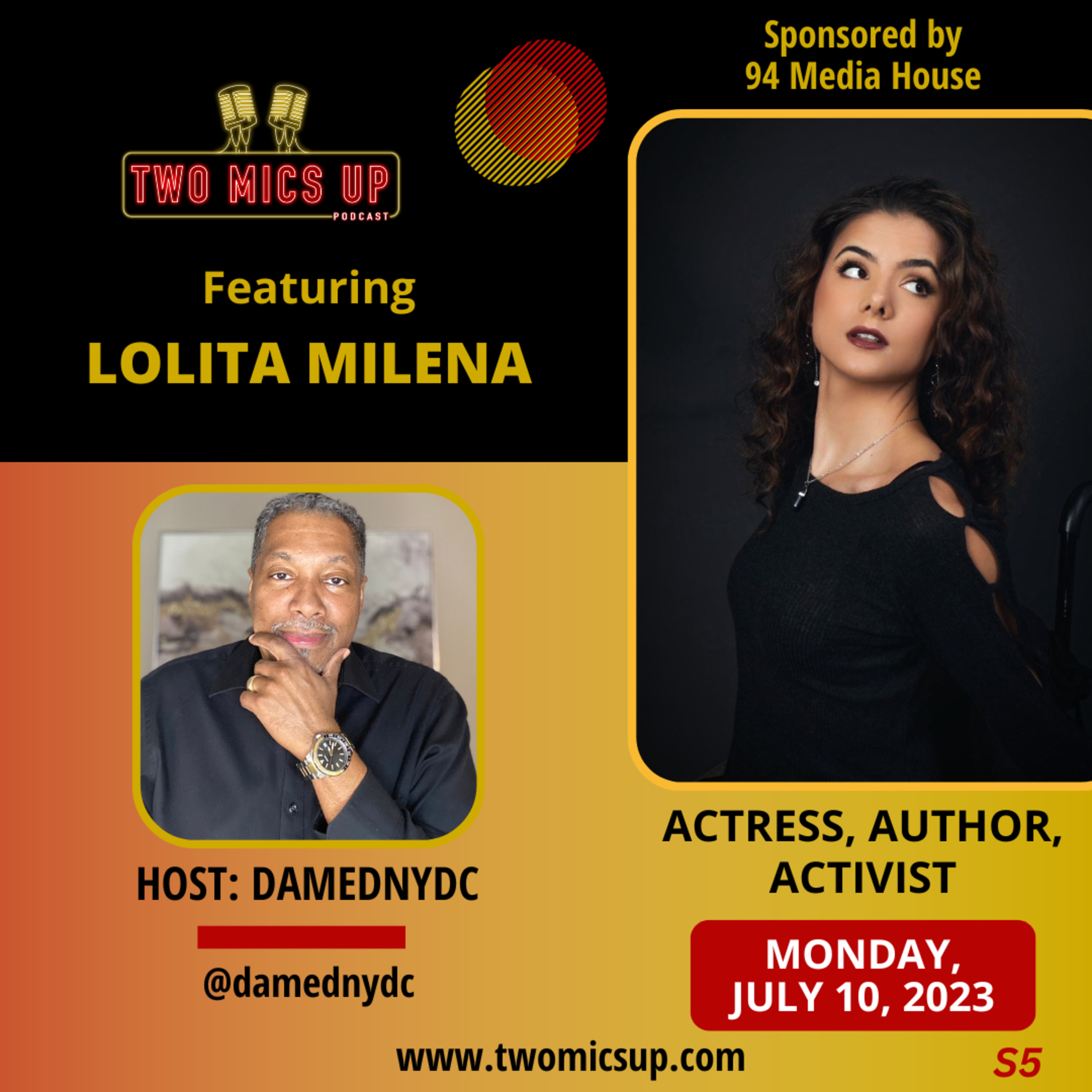 Today on Two Mics Up, host damednydc is joined by actress Lolita Milena. Lolita is a paraplegic actress, author, activist and star of Lionsgate's Buzzfeed's 1UP. \n\nBorn in Siberia, Milena immigrated to the United States in 2002 as a toddler with her then foster family. The fall of the same year through child abuse, Milena was left permanently paralyzed. It was shortly after she was adopted by her current family. \n\nLolita has performed in close to 20 theatrical productions as well as use social media platforms to create content ranging from short skits to special effects makeup and so much more!