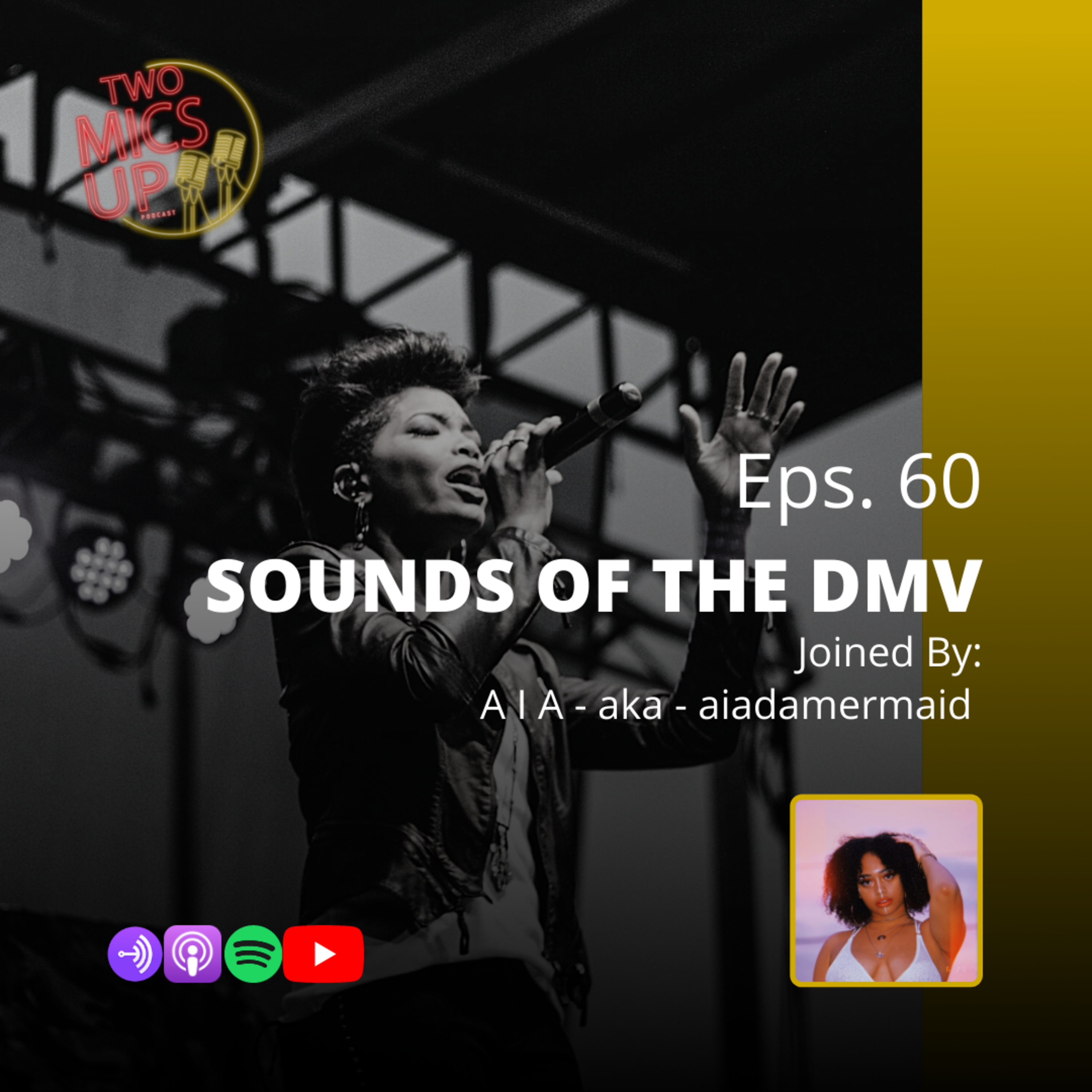 Eps. 60: Today as the Two Mics Up crew closes out a successful Season 2, we sit down with AIA - aka aiadamermaid. Ya'll are not ready for this young Queen... she hits us with her funk, jazz, neo-soul Sounds of the DMV! Tune in as we vibe with AIA, learn about who she is, dive into her background and development as an artist and listen to her sing!!! You don't want to miss this episode - it's a total movement and vibe!