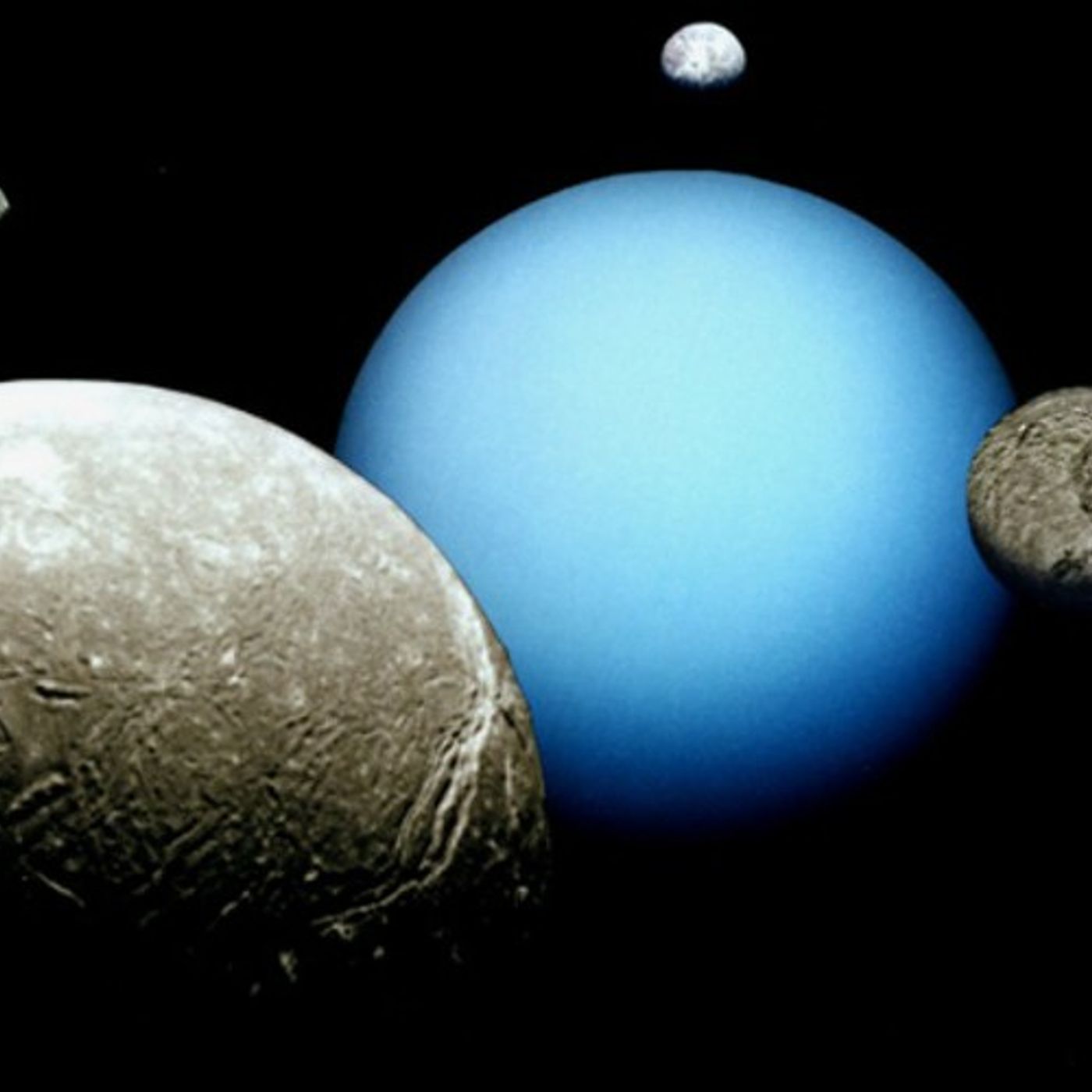 Uranus has 27 moons total, but the planet has five especially large moons \u2014 Titania, Oberon, Umbriel, Ariel and Miranda. When Voyager 2 swooped by the Uranus system back in 1986, it captured images that showed that these five big moons are made up of equal parts rock and ice and are heavily cratered. These images also showed physical signs of liquid water erupting through a world and freezing on its surface, called cryovolcanism.