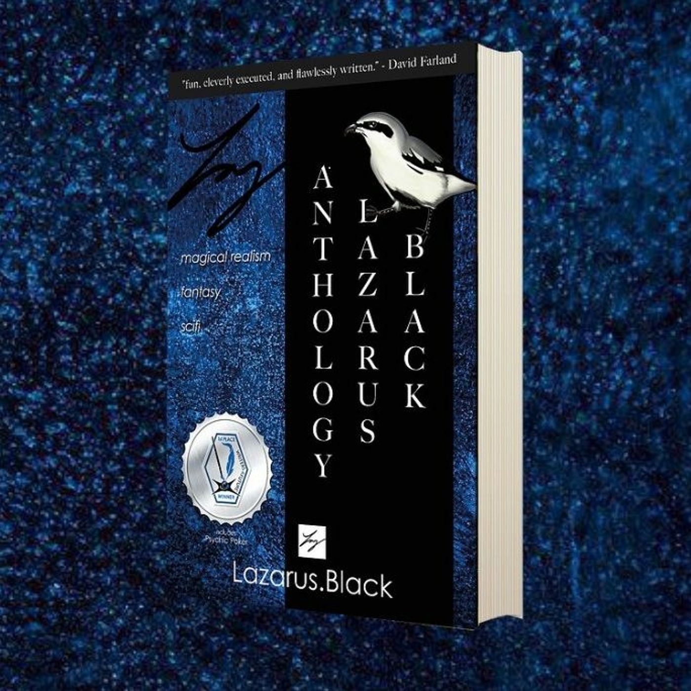 ANTHOLOGY LAZARUS BLACK Table of Contents Dragons, hunters, lovers, monsters, AI, wizards, fairies, assassins, psychics, scientists, explorers, dying gods, Oh my! This short fiction anthology has it all, including the First Place-Winning story 'Psychic Poker'. \u2022 "Double Eagle" - A neurotic detective encounters a nightmarish villain. \u2022 "God\u2019s Gauntlet" - A scientist must use the latest in genetic manipulation to give herself every advantage to escape being buried alive. \u2022 "Sacred Waves" (Novella) - A NYC publicist must save an enigmatic man from the mob, the government, and the deadly thirst of the general public. \u2022 "Hairless Hullgaroths" - On a distant world, two students must decipher an alien language unlike anything they have ever seen. \u2022 "Watch to the End" - An AI companion of an old woman on Mars must convince her that life is still worth living. \u2022 "Dart: The Sliver-Master\u2019s Slave" (Novella) - A fairy-like assassin hunts an evil wizard and a dragon to earn his freedom, only to learn nothing is what it seems. \u2022 "Oilcan Jim" - In 1945, a slingshot-wielding hoodlum terrorizes a tiny farm town....or does he? \u2022 "Butcher Breeds" - An ornithologist finds herself the subject of a serial killer's interest. But can she find him before he finds her? \u2022 "Dragon Soup" (Novella) - A Golden Knight must save a dragon's life so that he can save hers in return. \u2022 "Psychic Poker" (First Place Award Winner!) - The Award-Winning story of a bloke from down-under dragged into an illicit poker game where every player is Psychic and no one wants to be there. \u2022 The True Dragon of Atlanta (Chapters 1 & 2) - The first two chapters of The True Dragon of Atlanta, Lazarus Black's urban fantasy novel due to release in Summer of 2023 The True Dragon of Atlanta by Lazarus Black illustration by Chris Casciano When May Ling inherits a family curse, an ancient enemy, and a 75-ton Temple Bell, every one of her problems simply gets worse, as an ancient evil threatens the world with Truth and May's lies may be the only power that can save us. May Ling\u2019s mundane world is about to explode, and all because of one Bell. When an ancient goddess appears in Atlanta to tear the world apart with the Truth, it awakens May to the magic world and the power inherent in lies. May\u2019s life is chaos. She is 23 years old and lonely with delinquent child-siblings, two spiteful aunts, mountains of debt, even more bills in the future, and at the end of her best years as an escort and thief. The last thing she needs are new visions and powers. Revelations just make her life worse. More responsibilities mean more chaos and more work. So, she amasses a found-family of misfits from the fringes of Atlanta to survive it together: Bison is a giant afraid of themself, Cookie\u2019s afraid of the world, Benji is a monk in name only leading a band of like-minded brothers, and Kate and Ricardo work at opposite poles with May playing both sides from the middle. In the ultimate battle between good and evil, truth and lies, youth and wisdom, human and not, one single moment of May\u2019s life will define the future of reality. Will or won\u2019t the Bell ring? And what might happen if it does? Robert J. Sawyer, Hugo Award-winning author of Hominids says "Lazarus Black is a terrific writer with an irre