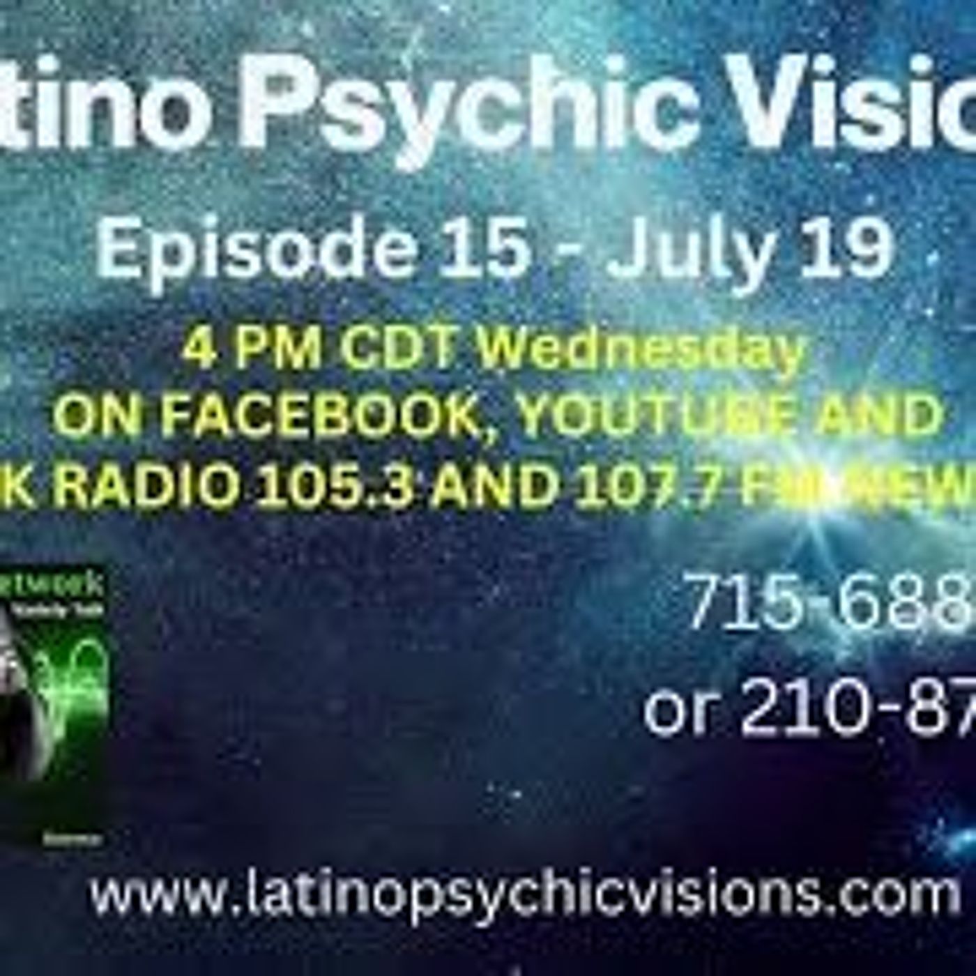 Episode 15 Tune in to the show for current topics and participate in the various chat rooms to partake in the "reads" that 19 year, Psychic Medium Roger Garza Sr picks up on throughout the show. Topics vary from week to week. Description of Latino Psychic Visions Show: Internationally known Psychic Medium Roger Garza Sr. has been helping people for the past 19 years connect with loved ones who have passed. In 2004 Roger had a near death experience after a heart attack and a stroke. He came back to life with the gift of being able to see and communicate with spirits. Latino Psychic Visions is an interactive show where Roger connects viewers with spirit. The show varies from week to week and solely depends upon who the audience is. He also has the ability to see inside the human body, so he may alert a viewer about a potential health concern that should be followed up by a doctor. Roger also sees the Past, Present and Future, and makes predictions In 2018 Roger married his high school sweetheart, Faye, and started the shows, Latino Psychic Visions and This Mug\u2019s For You! on Facebook. And now, these shows have gone global, and are watched by people all over the world. See Roger (and Faye) LIVE every Wednesday night at 4 pm Central Time and every Saturday morning at 10:30 a.m. Central Time on YouTube, Facebook and now on the United Public Radio Network and UFO Paranormal Radio Network 105.3 and 107.7 FM in New Orleans. WEBSITE: www.latinopsychicvisions.com Contact numbers: 17156884091 and 12108754521