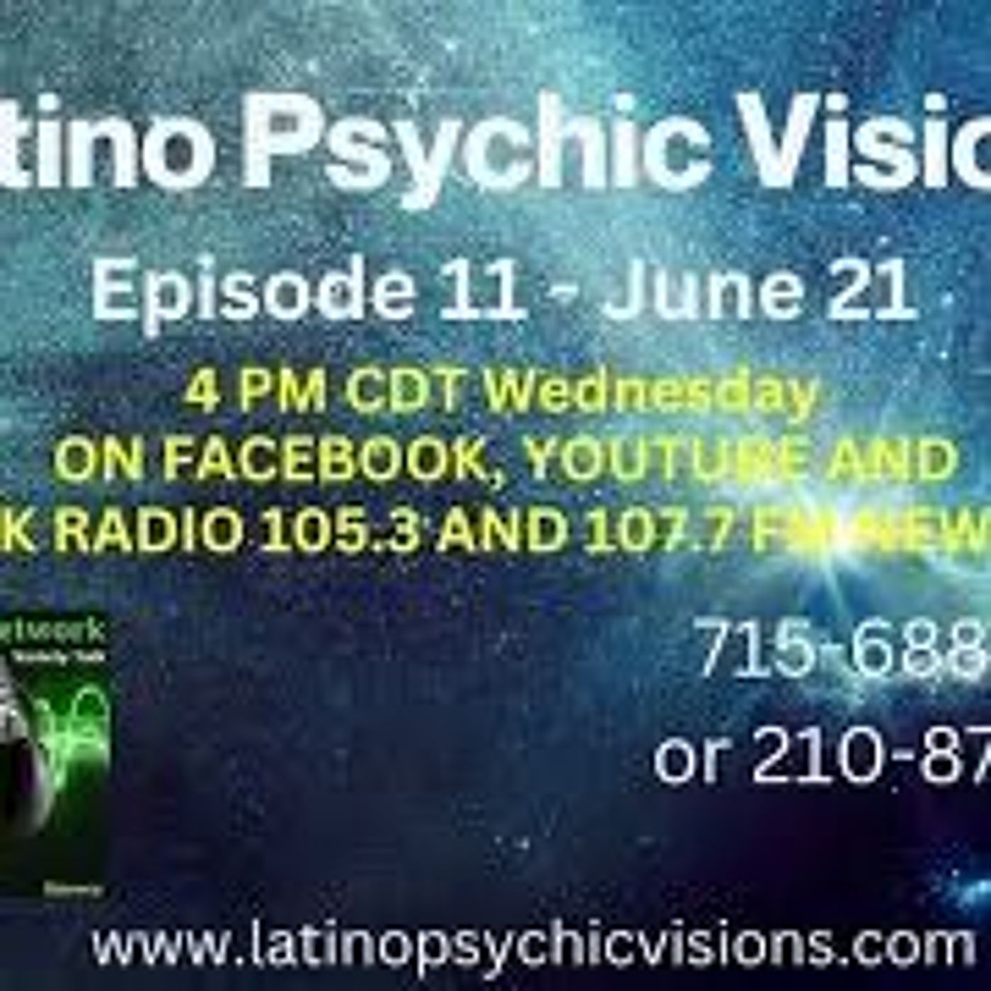 Episode 13 Tune in to the show for current topics and participate in the various chat rooms to partake in the "reads" that 19 year, Psychic Medium Roger Garza Sr picks up on throughout the show. Topics vary from week to week. Description of Latino Psychic Visions Show: Internationally known Psychic Medium Roger Garza Sr. has been helping people for the past 19 years connect with loved ones who have passed. In 2004 Roger had a near death experience after a heart attack and a stroke. He came back to life with the gift of being able to see and communicate with spirits. Latino Psychic Visions is an interactive show where Roger connects viewers with spirit. The show varies from week to week and solely depends upon who the audience is. He also has the ability to see inside the human body, so he may alert a viewer about a potential health concern that should be followed up by a doctor. Roger also sees the Past, Present and Future, and makes predictions In 2018 Roger married his high school sweetheart, Faye, and started the shows, Latino Psychic Visions and This Mug\u2019s For You! on Facebook. And now, these shows have gone global, and are watched by people all over the world. See Roger (and Faye) LIVE every Wednesday night at 4 pm Central Time and every Saturday morning at 10:30 a.m. Central Time on YouTube, Facebook and now on the United Public Radio Network and UFO Paranormal Radio Network 105.3 and 107.7 FM in New Orleans. WEBSITE: www.latinopsychicvisions.com Contact numbers: 17156884091 and 12108754521
