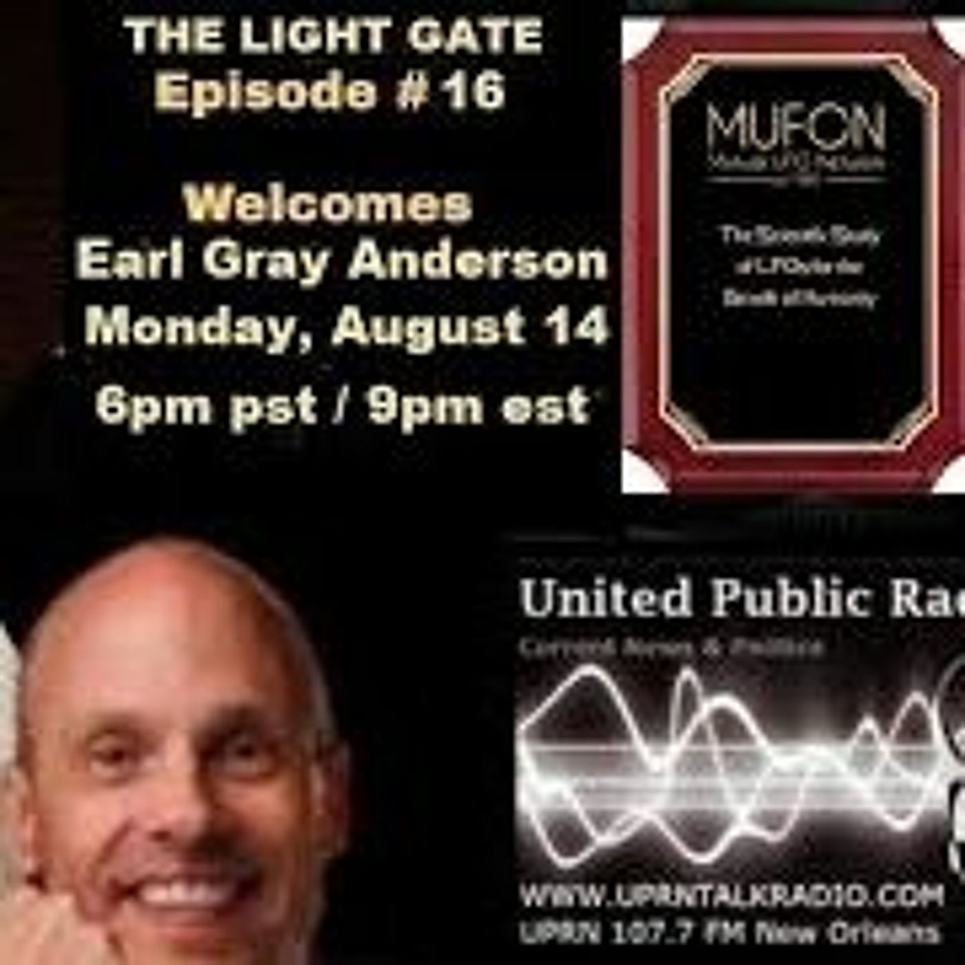 Monday night live, , \u201cThe Light Gate\u201d welcomes, Earl Grey, (aka: Earl Grey Anderson.) He is a UFO experiencer, a MUFON field investigator and the MUFON State Director of Southern California, and a MUFON STAR team member. MUFON is the Mutual UFO Network, the world\u2019s largest citizen UFO study group. He\u2019s also a singer/songwriter and a guitarist, and a retired (but still licensed) Vocational Nurse. Earl has been researching the UFO phenomenon for many years, and has investigated nearly 1000 cases for MUFON, and is a sought-after presenter and speaker. He has been a guest on numerous podcasts, and radio shows, and television shows, including \u201cUnidentified with Demi Lovato,\u201d \u201cI Want To Believe,\u201d \u201cMUFON and UFOs: The Proof is Out There,\u201d and \u201cAncient Aliens.\u201d He has spoken at Aliencon and MUFON Symposiums and hosted the experiencer workshop at the 2022 MUFON Symposium in Denver, Colorado. Earl is one of very few fulltime ufologists. Earl feels that the Experiencer Phenomenon is the beating heart of Ufology. As Earl says, \u201cIf we wish to understand this phenomenon, we need to listen to those who have had face to face encounters.\u201d He lives with his wife Lisa, and two cats, in Los Angeles, California. LINKS: https://www.facebook.com/UrlieGee