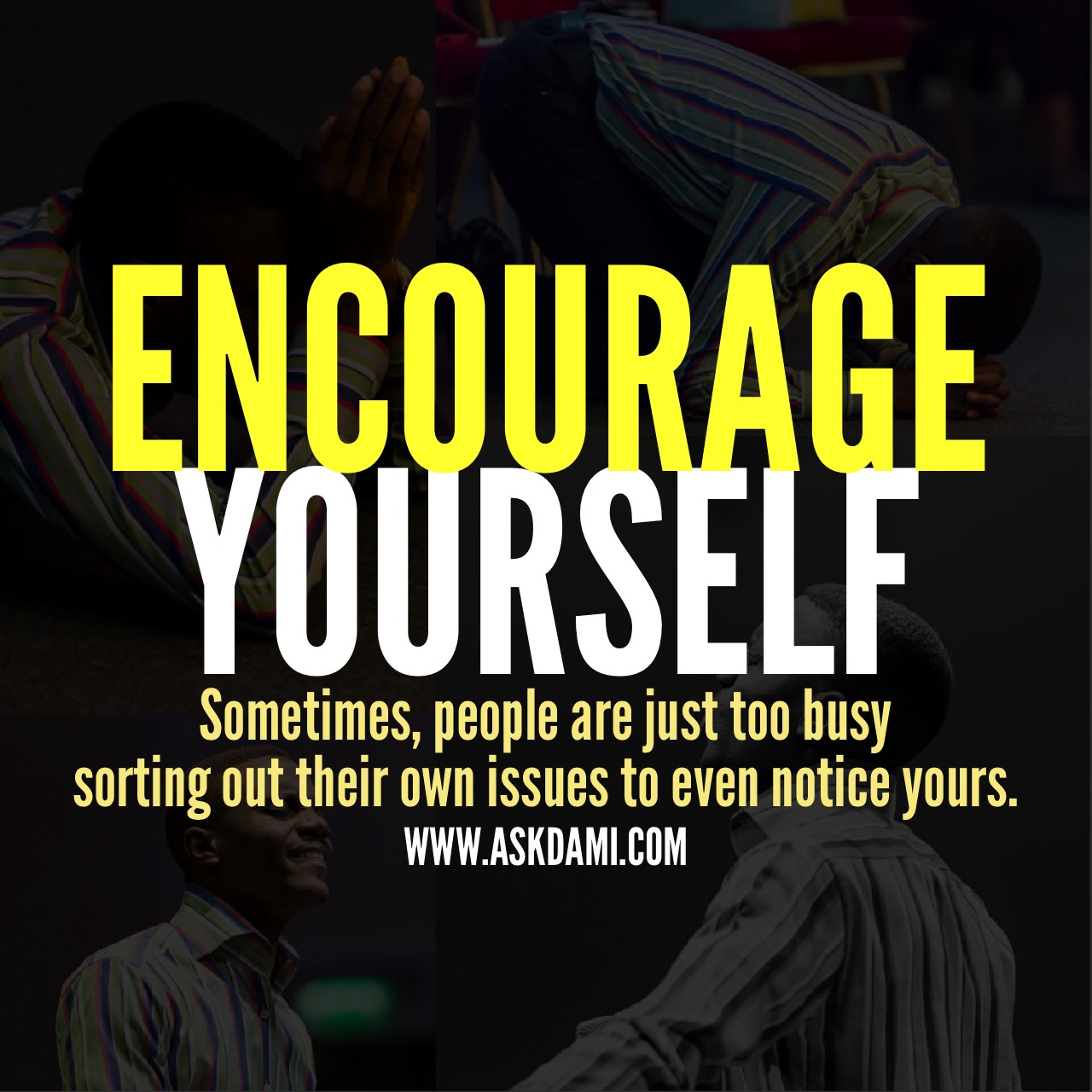 Most times, no one else can fully and truly grasp the intensity of the pain you feel when you are going through trying times and stressful seasons. Even your best friends may struggle to appreciate the real weight of the burden you bear but you owe it to yourself to encourage yourself and