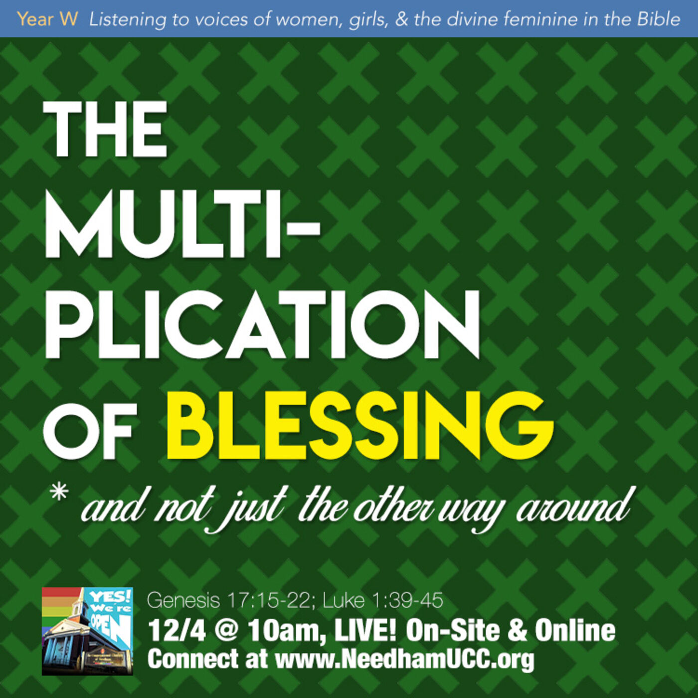 Join us Sundays for worship, LIVE! on-site and online via Zoom @ 10am ET. Connection info at www.NeedhamUCC.org.