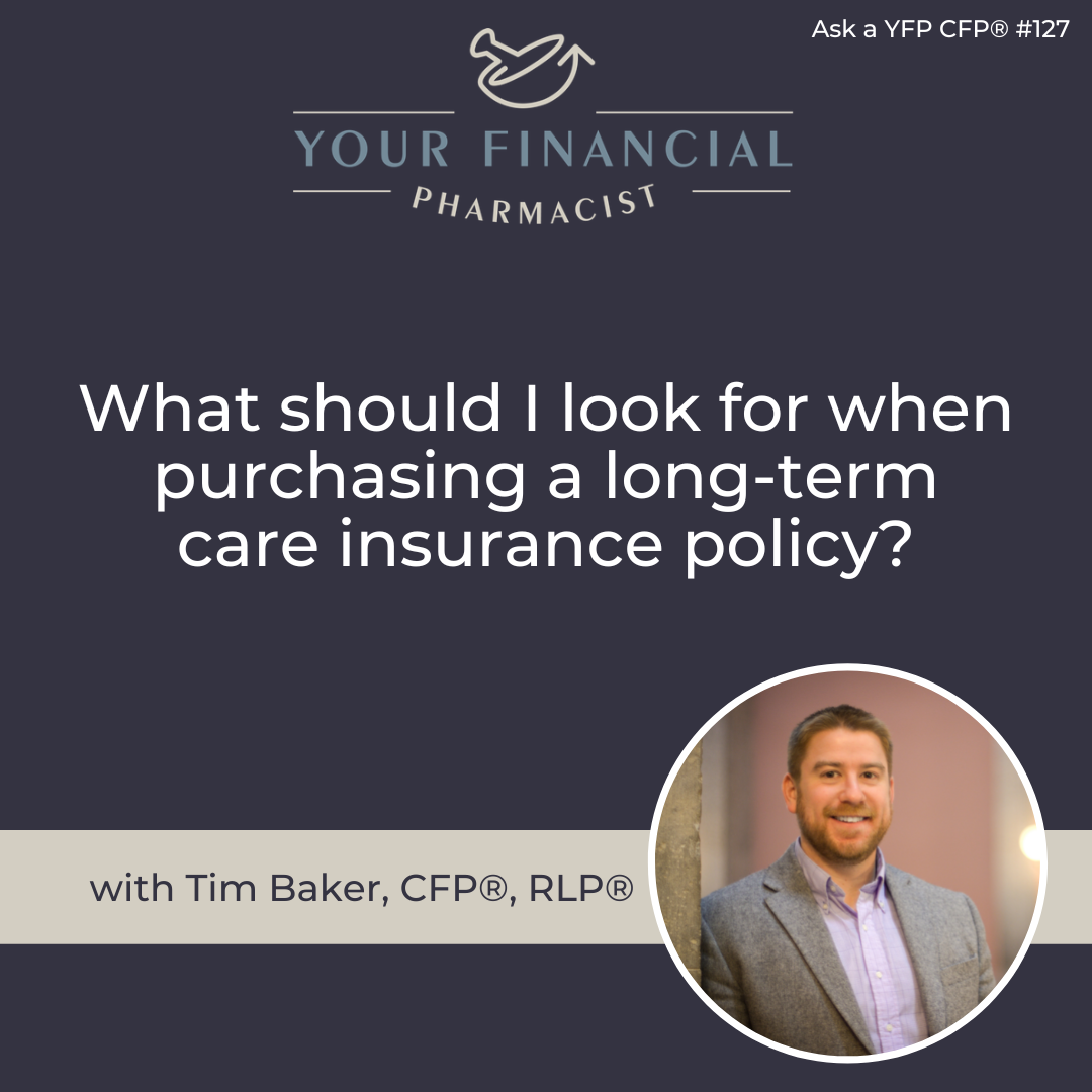 Welcome to Ask a YFP CFP\xae, a segment of the Your Financial Pharmacist Podcast! On today's show Tim Baker, CFP\xae, RLP\xae takes this question from Scott in Uniontown, Ohio:\xa0What should I look for when purchasing a long-term care insurance policy?