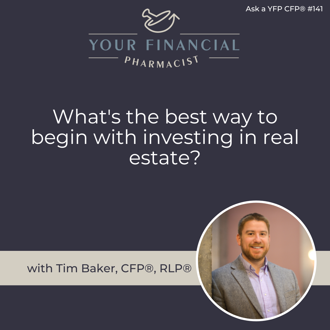 Welcome to Ask a YFP CFP\xae, a segment of the Your Financial Pharmacist Podcast! On today's show Tim Baker, CFP\xae, RLP\xae takes this question from a recent presentation: What's the best way to begin with investing in real estate?